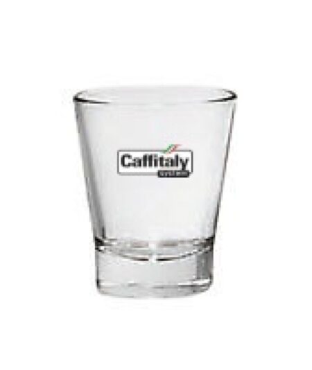 Set di 6 bicchierini da caffè in vetro firmati Caffitaly, eleganti e resistenti, perfetti per gustare al meglio l’espresso.